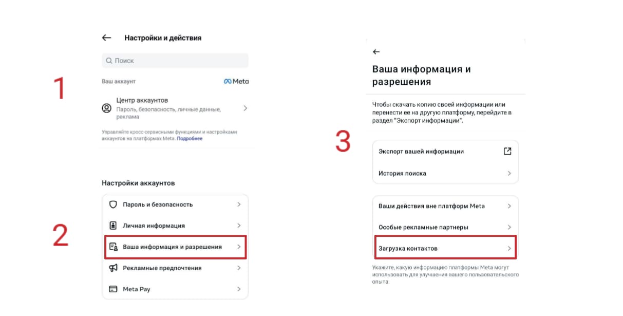 - В основных настройках переходим в «Центр аккаунтов Meta*».