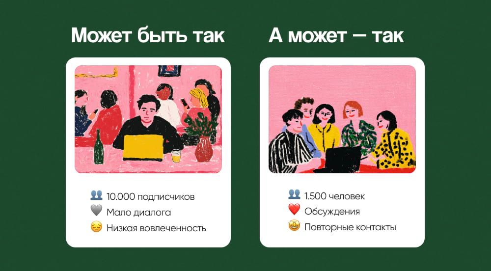 Собрать подписчиков и собрать сообщество единомышленников – разные вещи. Подписчики могут быть пассивными. Сообщество же участвует, обсуждает и делится опытом.