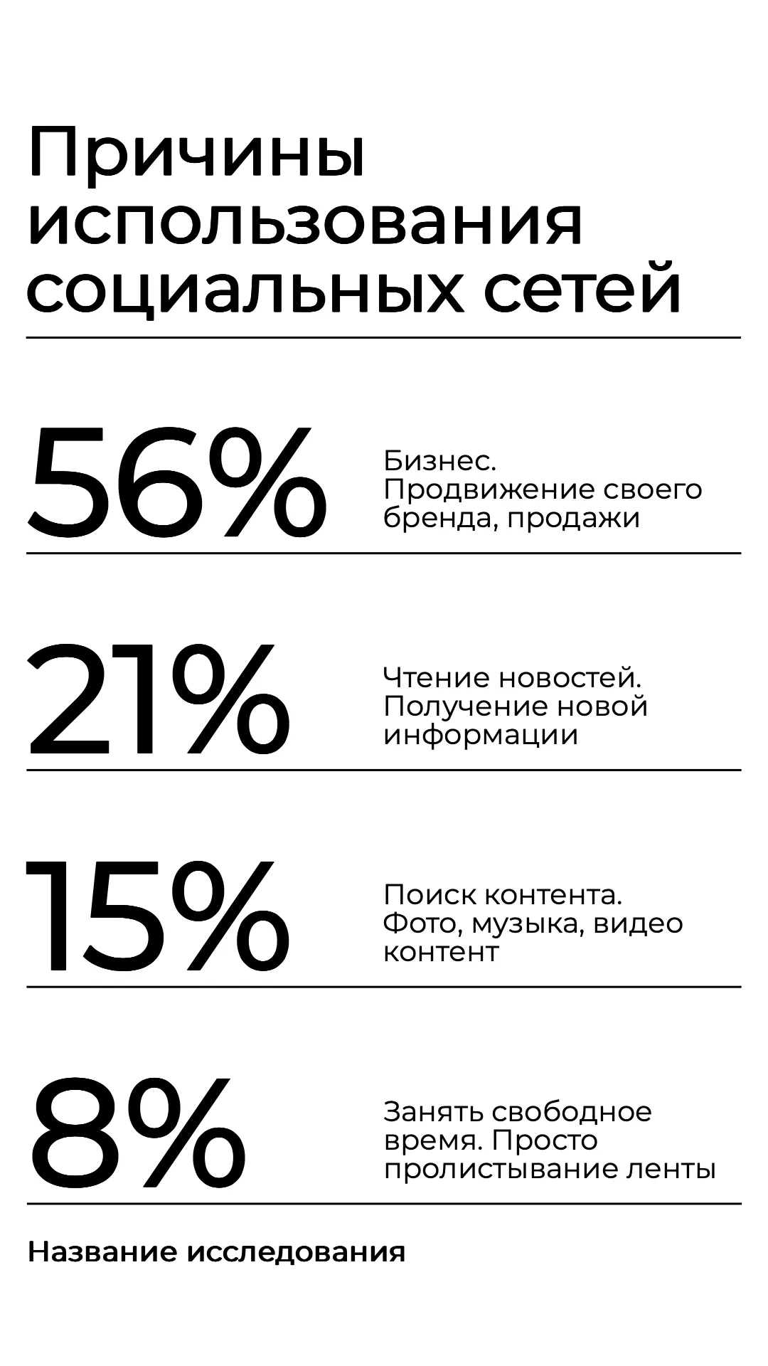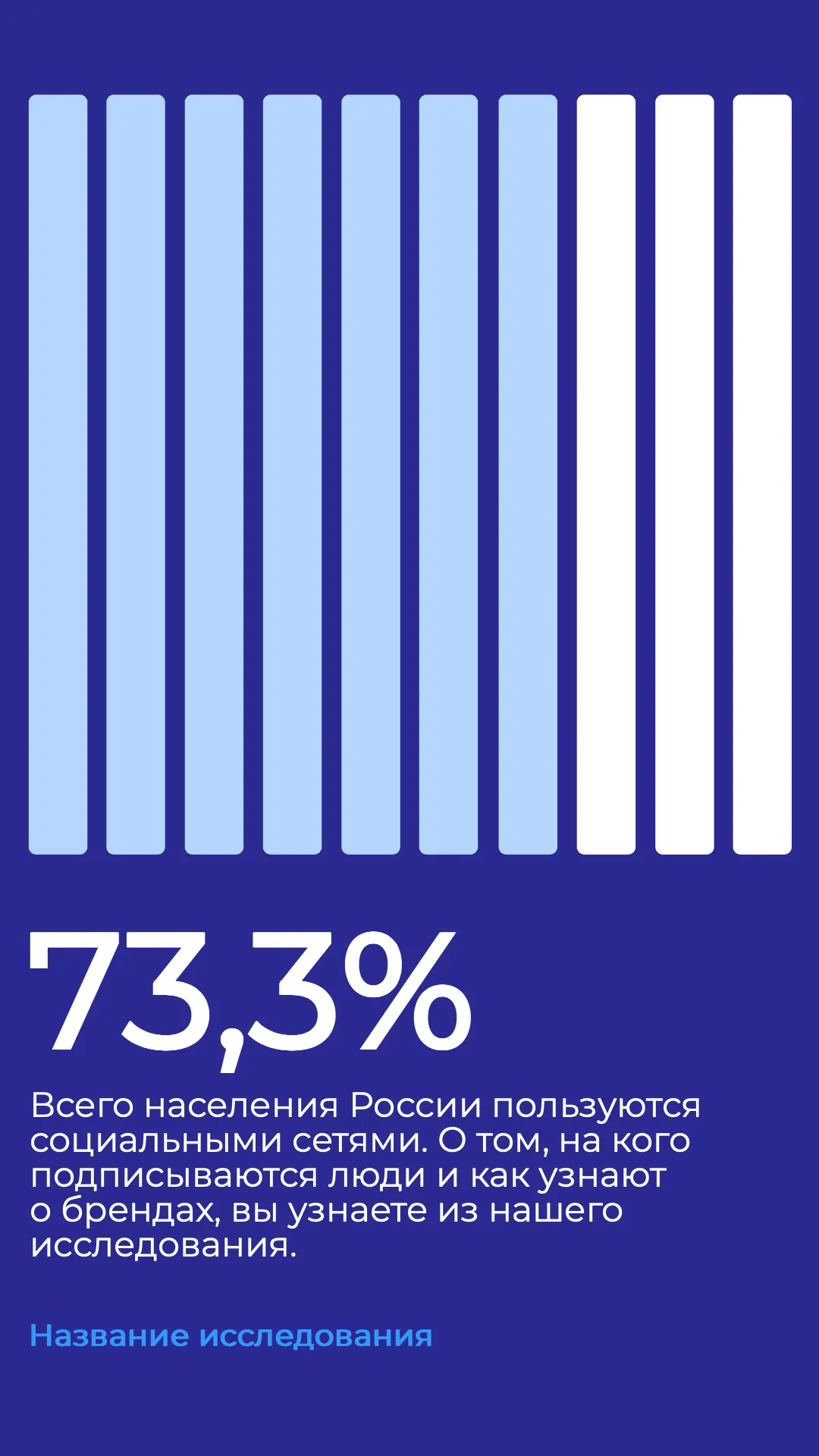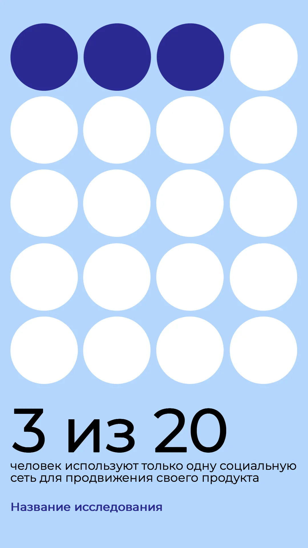 Данный шаблон рассчитан на визуальную интерпретацию статистических данных. Он точно пригодится научпоп-каналам, новостным сообществам, а также профилям онлайн-школ. Для профилей этих тематик важно демонстрировать свою экспертность через демонстрацию численных показателей. Статистические данные будут укреплять доверие со стороны аудитории, а интересная статистика – контент с хорошим виральным потенциалом.