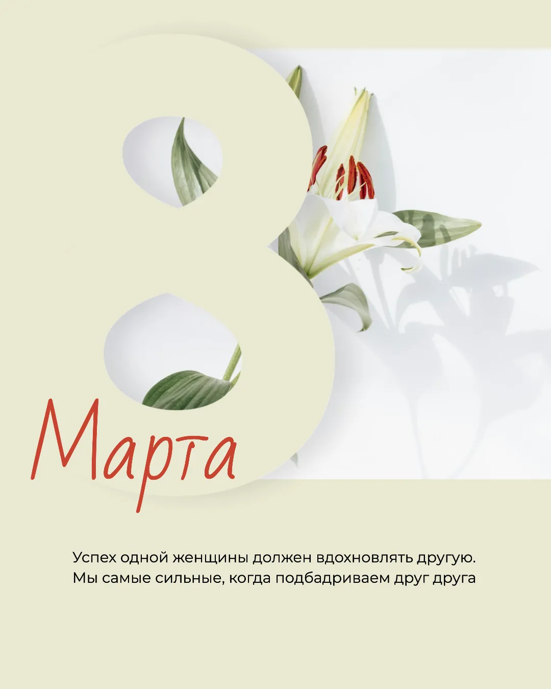 Элегантная открытка, где главенствует изящная лилия с нежными белыми лепестками и ярко-красными тычинками, выделяющимися на чистом белом фоне. Тень от цветка добавляет глубины и визуального интереса. В углу картинки мягко красуется надпись "С Праздником!" красного цвета, совпадающего с тычинками цветка, создавая ощущение гармонии и праздничного настроения. Идеально подходит для поздравительной открытки или баннера, чтобы выразить чувства уважения и радости.