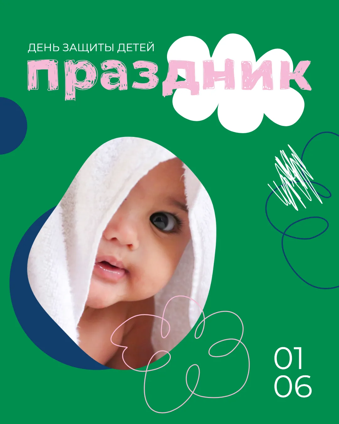 Этот шаблон изображения наполнен весельем и радостью, идеально подчеркивая значимость Дня Защиты Детей. Яркие цвета и игривые элементы создают атмосферу праздника, которая вдохновляет на создание аналогичного дизайна. Такой шаблон подойдет для детских садов, мероприятий для семей или магазинов игрушек, желающих привлечь внимание родителей и детей.